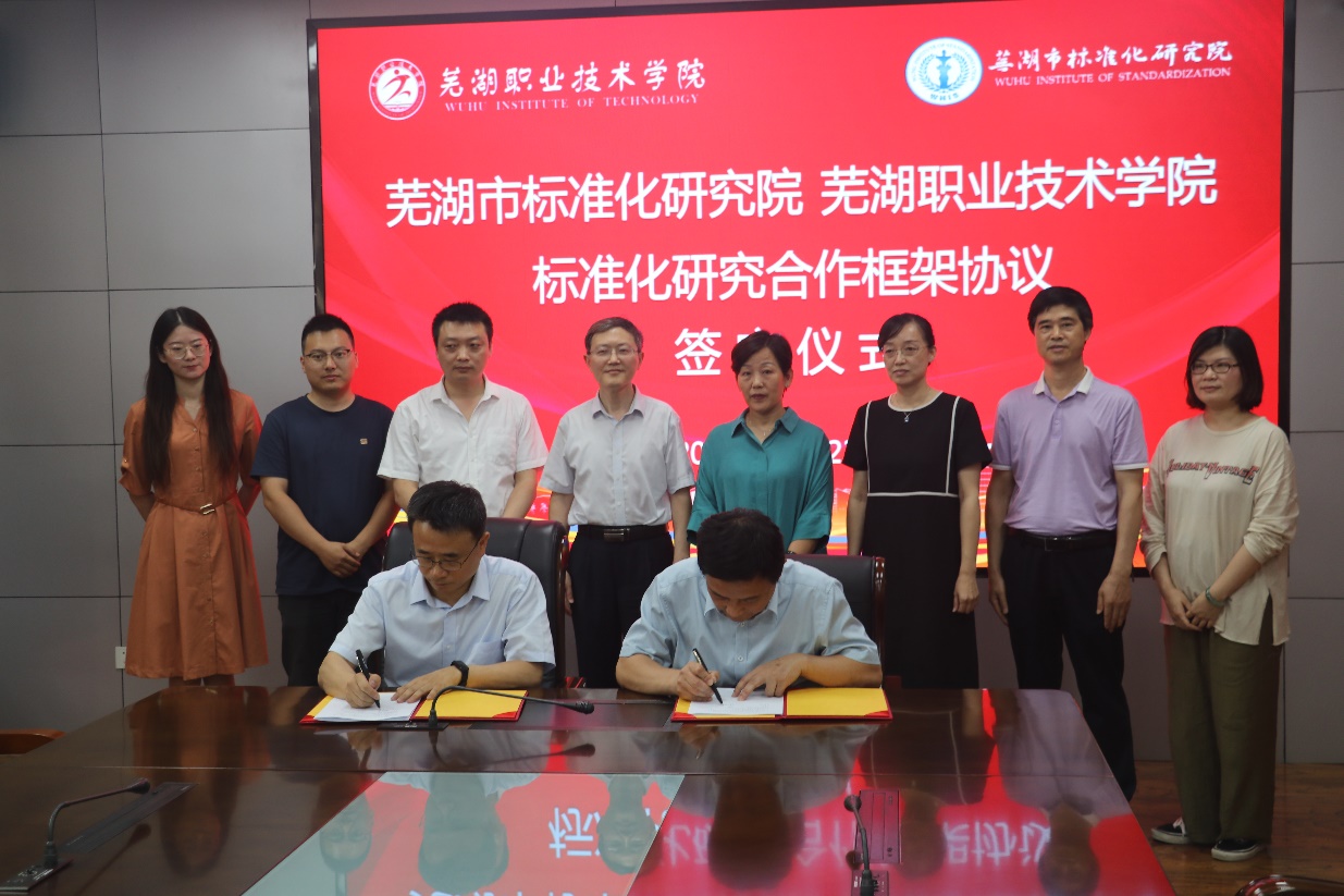 为进一步推进学校标准化研制工作,更深入服务地方产业发展。6月23日下午,在南校区正德楼1112会议室,学校与芜湖市标准化研究院举行了标准化研究合作协议签字暨揭牌仪式。芜湖市市场监督管理局二级调研员王劲松、标准化科科长何先勇,芜湖市标准化研究院院长蒯勇等一行6人;学校党委副书记、校长高武,副校长刘育红出席签约仪式,教务处、人力资源处、科研处、食品与生物工程学院负责人参加;签字暨揭牌仪式由学校党委委员、教务处处长娄洁主持。