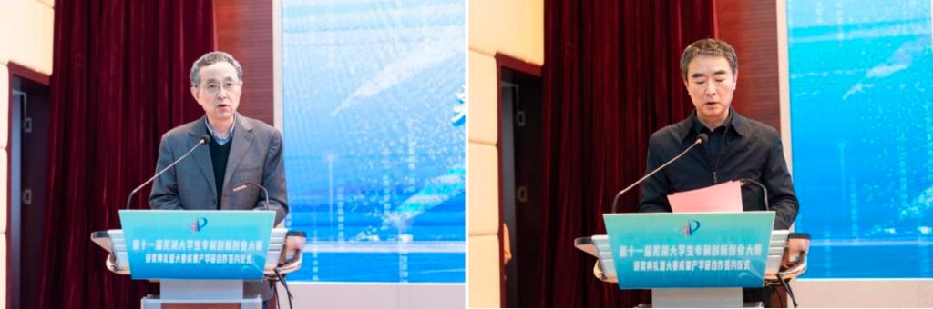 高武首先代表学校向出席本次活动的领导来宾表示了热烈的欢迎,向获奖选手、指导老师及获奖院校表示祝贺。他指出,本次办赛是学校继2017年之后第二次承办该项赛事,尽管受疫情影响,依然实现了两个“首次”,即首次吸引了两所市外高校参加,首次在办赛的同时开展大赛成果转化和产学研合作签约。他表示,学校一直以来高度重视大学生创新创业教育,重视创新成果孵化培育,围绕区域产业发展需求,依托大赛涌现出一批优秀成果和优秀人才。学校将通过大赛不断提升学生创新创业能力,期盼更多驻芜高校和市外高校大学生通过大赛这一平台,成就创新创业梦想。