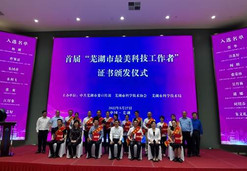5月27日上午,由市委宣传部、市科协、市科技局主办的首届“芜湖市最美科技工作者”评选结果正式揭晓,我校张爽教授成为唯一获此荣誉的职业院校教师代表。颁发仪式由芜湖市科协党组书记、常务副主席刘兴荣主持,市委副书记、政法委书记张庆亮,市领导王芳、陈怡等为全市15名科技工作者颁发证书。